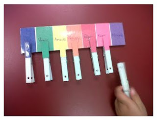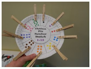 Here are a couple of great uses for clothes pins! Teachers at Pine Village in Needham made this fun number matching game using clothes pins and a paper plate.